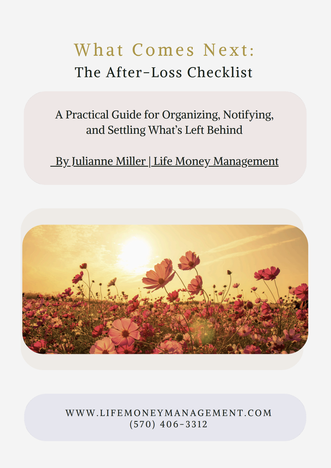 Includes: Practical checklists for accounts, home tasks, estate matters, and settling what’s left behind
